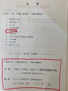 講演会のテーマは「大丈夫、大丈夫、大丈夫。人間、万事塞翁が馬=人生何が起こるかわからない」とさせていただいた。